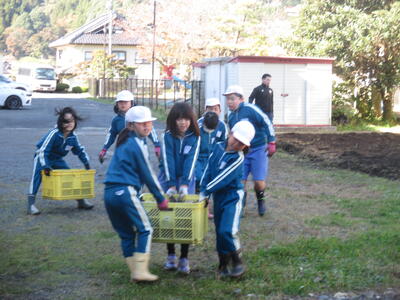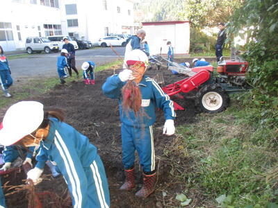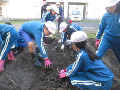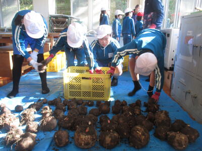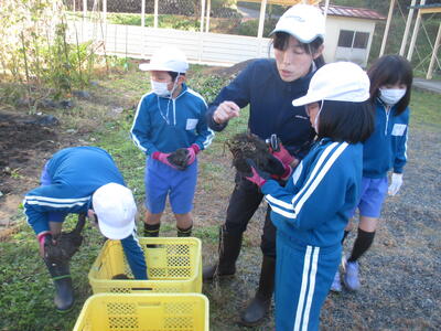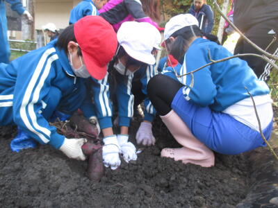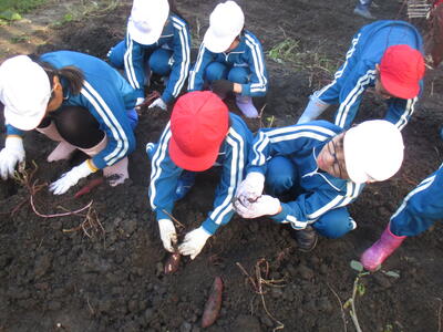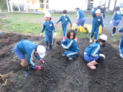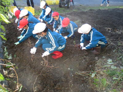 1・2年生、ひだまり学級が育ててきた「さつまいも」、3・4年生が育ててきた「こんにゃく芋」を収穫しました。