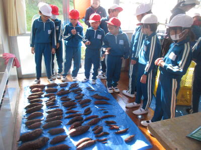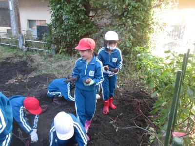 今年は、夏の猛暑などもありましたが、子どもたちは毎日水をあげて世話をしてきました。その成果が見事な収穫に結び付いたことと思います。みんなで食べるのが楽しみです。