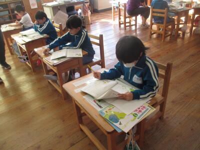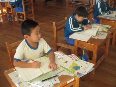 2024年11月12日 12時46分1年生の国語では、「ことばを楽しもう」ということで、早口言葉など楽しい表現の文章に親しんで、声の大きさや速度を変えて読んで楽しみました。