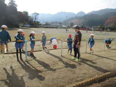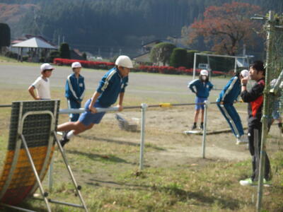 2024年11月14日 13時40分5・6年生の体育で鉄棒の学習をしています。