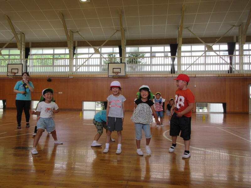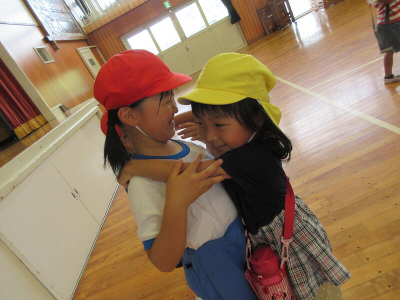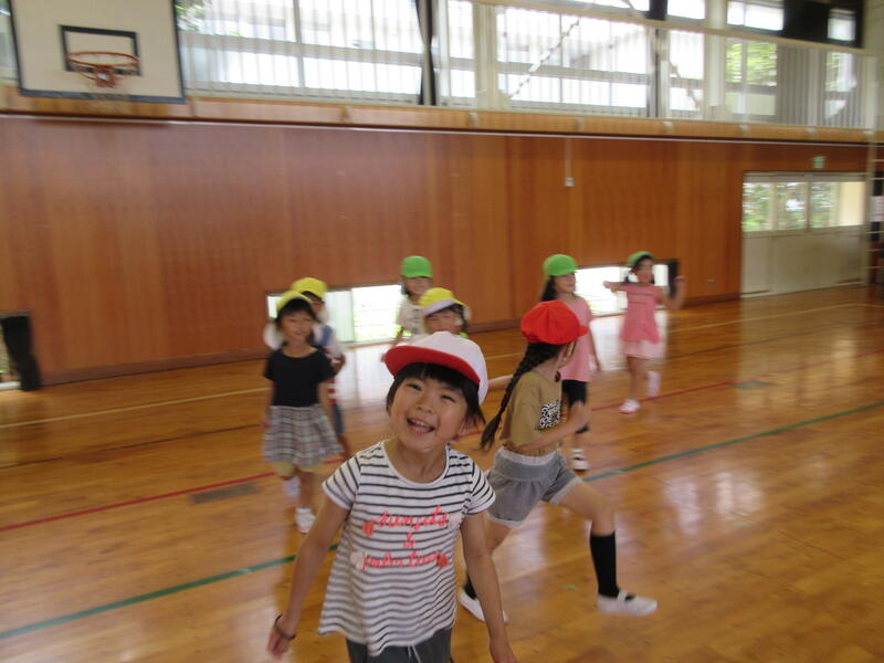 今日は、1年生が笹原幼稚園児と交流活動を行いました。体育科の学習の一環で、「おに遊び」や「表現遊び」などを一緒にやりました。これらの内容は、幼稚園児に楽しんでもらおうと、1年生が話し合って決めました。1年生も幼稚園児も楽しい交流活動ができました。みんなの笑顔がとても印象的でした。