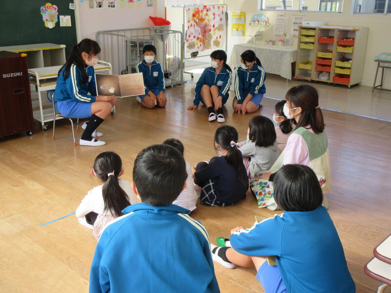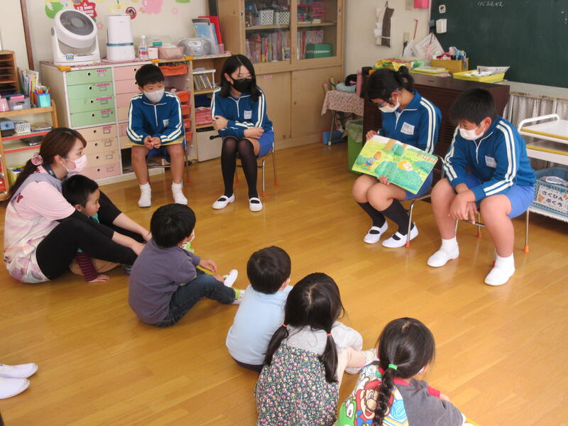 6年生が、お昼休みに幼稚園で『絵本の読み聞かせ』を行いました。どのように読めば楽しんでもらえるかを考えて練習してきました。園児からの「楽しかった!」の声をたくさん聞くことができました。これからもアイディアを出し合って、楽しい交流活動を続けていきたいと思います。