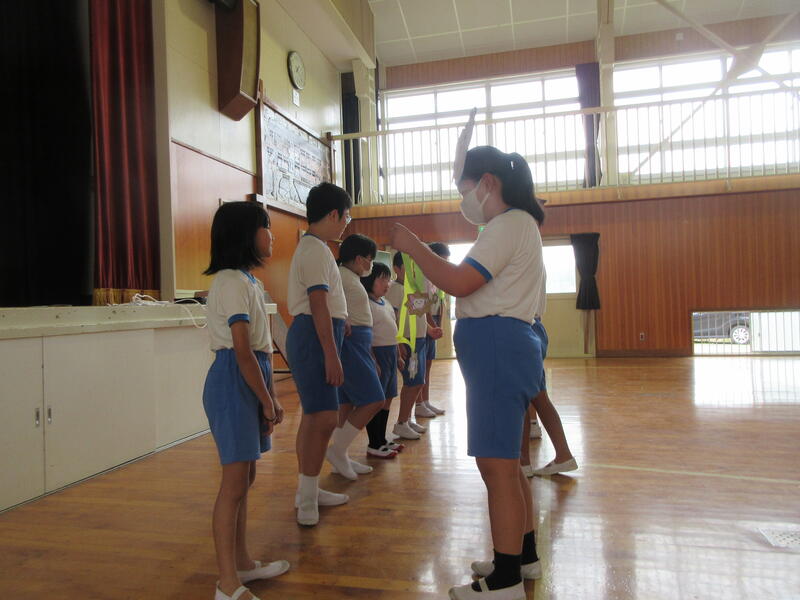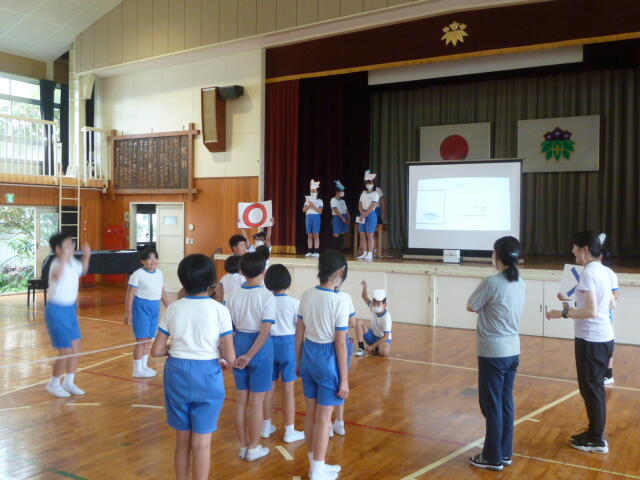 2023年6月27日 15時33分今日は保健給食委員会が企画した、歯についての集会がありました。始めに、アンケートの結果を発表し、次に全8問の〇×クイズを行いました。〇×クイズで最後まで残った6人には、手作りのメダルが授与されました。