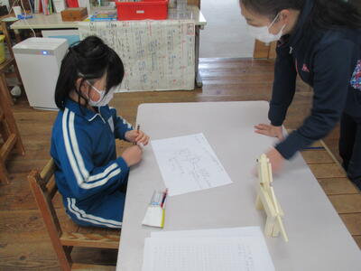 図工の作品発表に向けて